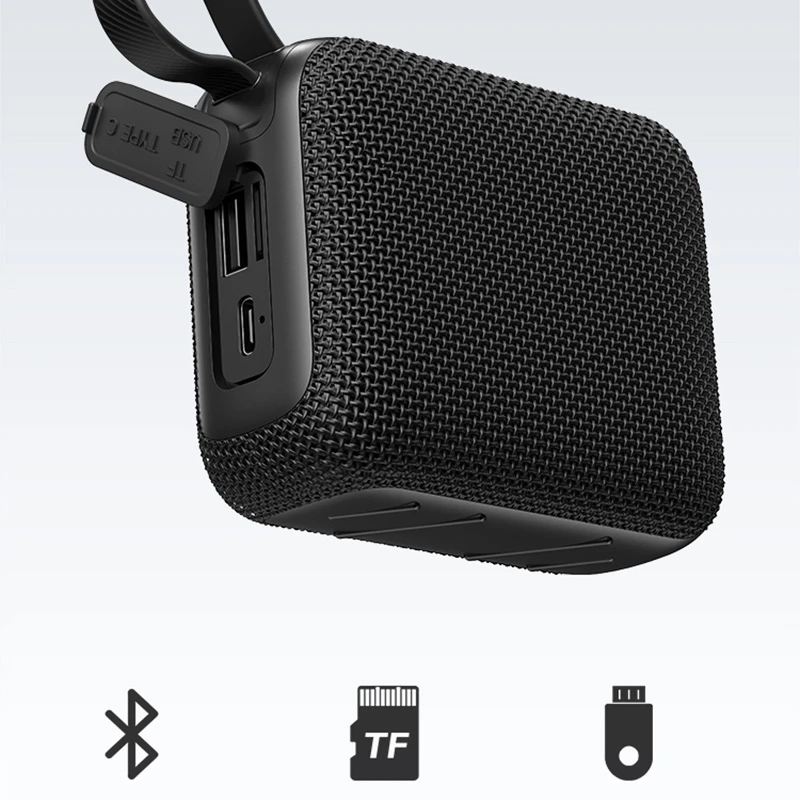 - سایر ویژگیها: امکان اتصال TWS (دو اسپیکر به صورت همزمان)، بدنه ترکیبی پلاستیک + پارچه، نشانگر LED، طراحی قابل حمل